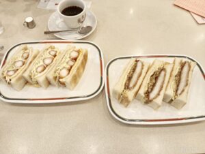 ポークカツサンド、こちらも柔らかいカツと千切りキャベツ、