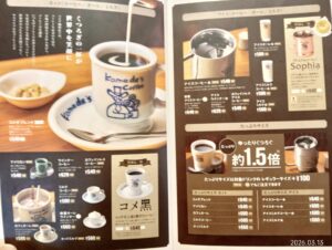 で、こちらが、地元のコメダ珈琲のメニュー