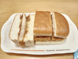 カツパンは見た目よりも、カツが柔らかく、パンも柔らかい。